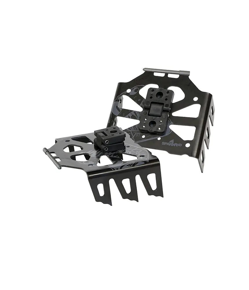 Designed for our hardcore hardbooters, these crampons slide into tech toe claw mounts. Install and remove on the fly for utmost confidence in dicey conditions. Stack up the crampon riser blocks to keep the full depth of teeth in the snow when using heel risers.