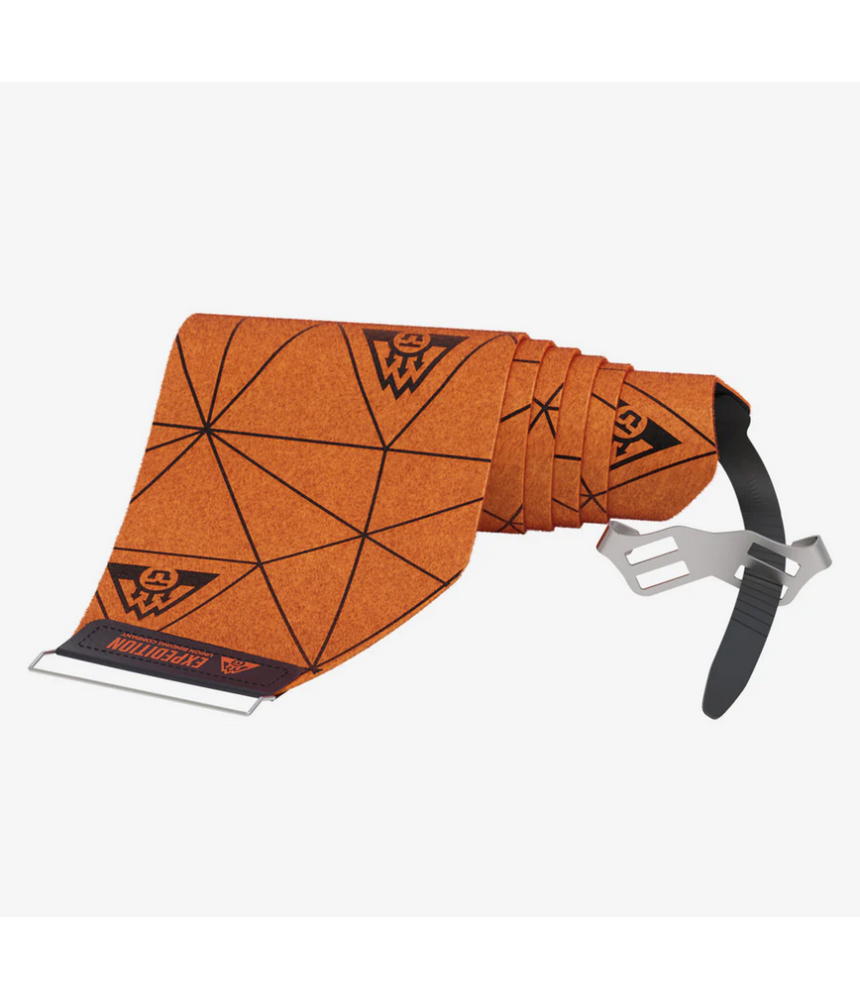 Indestructible asymmetric heat-treated aluminum clips and Voile Strap style tail straps ensures your skins stay snug and secure, while a 100% waterproof membrane between the fibers and the adhesive drastically improves durability and glue performance while reducing weight and making them more pliable for easy stowing. And the Ever Dry hydrophobic treatment makes sure they keep gripping, whatever the weather—no need for sprays or waxes to stop the glop.