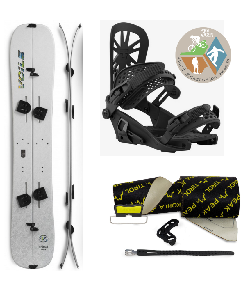 Splitboard completa di pelli, attacchi, clips ed interfaccia specifica per gli attacchi selezionati.